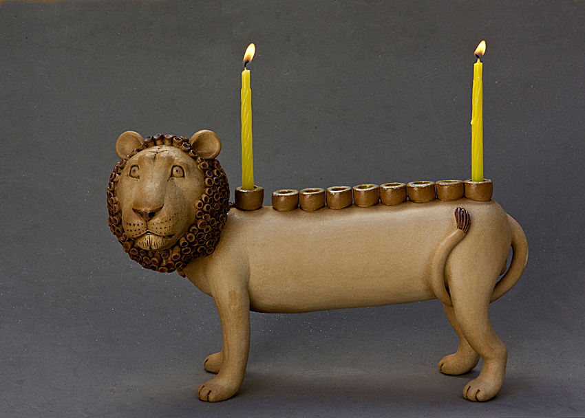 Boris Katz’s ceramic Hanukkiot blend playful artistry with imaginative storytelling. Each piece is lovingly sculpted, transforming traditional Hanukkah menorahs into charming creatures and delightful characters. Lit by dancing flames, these ceramics bring warmth, wonder, and celebration to festive nights.